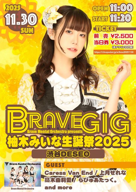 Brave Mental Orchestra pre.¡ÖBrave GIG-Í®Ìڤߤ¤¤ÊÀ¸Ãº×-¡× Æü»þ¡§11/30(Æü) ³«¾ì 11:00 / ³«±é 11:20 ²ñ¾ì¡§½ÂëDESEO ÎÁ¶â¡§Á°Çä2,500±ß / ÅöÆü3,000±ß (DÊÌ) ¥Á¥±¥Ã¥È¡§https://t.livepocket.jp/e/bmo20251130 ¥²¥¹¥È¡§Caress Van End / ¾å·î¤»¤ì¤Ê / üâÌÚͳ轰¦ / ¤é¤Ó¤å¤¢¤¿¤Ã¤¯¡£