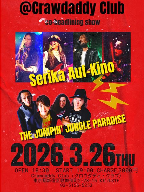 3/26 ËÜÆü¤Î¥é¥¤¥Ö¡¡ Serika Auf-Kino & THE Jumpin' Jungle Paradise Live¡¡ OPEN 18:30 START 19:00 CHARGE 3000±ß¡¡ ¤è¤í¤·¤¯¤ª´ê¤¤¤¤¤¿¤·¤Þ¤¹¡ª¡ª