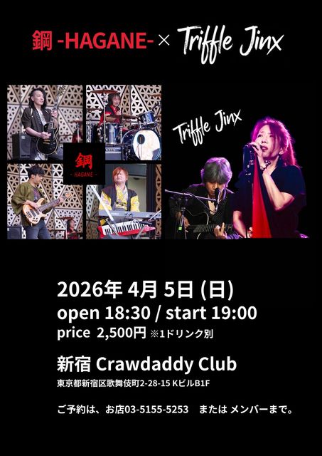 4/5 ËÜÆü¤Î¥é¥¤¥Ö¡¡ ¹Ý & Triffle Jinx LIVE¡¡ OPEN 18:30 START 19:00 CHARGE 2500±ß¡¡ ¤è¤í¤·¤¯¤ª´ê¤¤¤¤¤¿¤·¤Þ¤¹¡ª¡ª