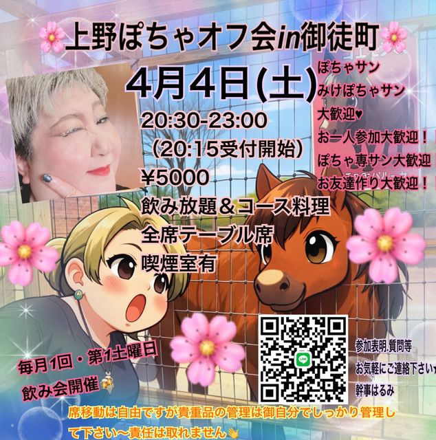 4/4(ÅÚ)20:30~23:00(20:15~¼õÉÕ³«»Ï) 70̾Á°¸å¤ÇÄùÀÚ¤·¤Þ¤¹¤Î¤ÇÁá¤á¤Î¤´Ï¢Íí¤ª´ê¤¤¤·¤Þ¤¹(ÅöÆü¤ªÅ¹¤ÎÀʤ¬¶õ¤¤¤Æ¤ì¤Ð¿Í¿ô³ÈÂ礷¤Þ¤¹) ¸æÅÌÄ®±Ø1ʬ¤Î·¤¤Ï椬¤Ê¤¤¥Æ¡¼¥Ö¥ëÀʤΤªÅ¹¤Ç¤¹¡ª ¥É¥ê¥ó¥¯¤Ï¥»¥ë¥Õ¤Ç¤Ï¤Ê¤¯µï¼ò²°¤µ¤ó¤Ç¤ÎÉáÄ̤ΰû¤ß²ñ¤Ç¤¹¢ö ½é¤á¤Æ»²²Ã¤¹¤ëÊý¤â¤³¤Îµ¡²ñ¤ËÀ§È󤤤餷¤Æ¤ß¤Æ¤¯¤À¤µ¤¤¢ö ¤Þ¤¿µ×¤·¤Ö¤ê¤ÎÊý¤ä¤è¤¯Íè¤Æ¤¯¤À¤µ¤ëÊý¤âÀ§ÈóÍ·¤Ó¤ËÍè¤Æ¤¯¤À¤µ¤¤(^^) ¤½¤·¤ÆÁ°²ó4/4(ÅÚ)¿·Ç¯°û¤ß²ñ¤Î¸å½ñ¤¤Ç¤¹¤¬78̾¤ÎÊý¤¬Íè¤Æ¤¯¤À¤µ¤¤¤Þ¤·¤¿¢ö ¤¤¤Ä¤â¿¤¯¤Î»²²Ã¼ÔÍÍ¡Á¤¢¤ê¤¬¤È¤¦¤´¤¶¤¤¤Þ¤¹(^^) ¤¦¤Á¤Î¥ª¥Õ²ñ¤Ï·î1²ó(Âè1