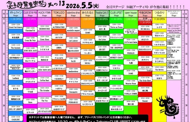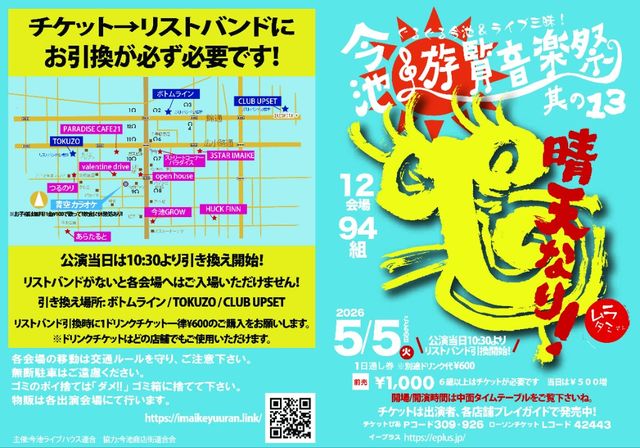 Ëèǯ¹±Îã¡¢»Ò¶¡¤ÎÆü¤Ë³«ºÅ¤µ¤ì¤ëǯ¤Ë°ìÅÙ¤ÎÉ÷ʪ»í¡£ º£ÃÓ°ìÂÓÁ´12¥õ½ê¤Î¥¹¥Æ¡¼¥¸¤Ç·×93ÁȤΥ¢¡¼¥Æ¥£¥¹¥È㤬½Ð±é¤Î¥¹¥Æ¡¼¥¸¤ò1Ëç¤Î¥Á¥±¥Ã¥È(¥ê¥¹¥È¥Ð¥ó¥É)¤Ç¼«Í³¤Ë¹Ô¤Í褷¥é¥¤¥Ö¸«ÊüÂê¤Ç°ìÆü¡¢º£ÃÓ¤ÇÍ·¤ÓÅݤ»¤ë¥µ¡¼¥¥Ã¥È·¿¥é¥¤¥Ö¥¤¥Ù¥ó¥È¡£ ▢5/5(²Ð½Ë) ÂêÌÜ: º£ÃÓÍ·Í÷²»³Úº× ¶¤Î13 http://imaikeyuuran.link ¾ì½ê: ¡Ö¤¢¤é¤¿¤ë¤È¡×¥¹¥Æ¡¼¥¸(º£ÃÓ¡ÖCafe&Bar¤¢¤é¤¿¤ë¤È¡×)¢¨ISAMU½Ð±é²ñ¾ì¡£(¾¡¢º£Ãӥܥȥà¥é¥¤¥ó/HUCK FINN/ÆÀ»°/Paradise Cafe21/¤Ä¤ë¤Î¤ê/valentinedrive/Grow/CLUB3STAR/open house/ÃÓ²¼CLUB UPSET/¥¹¥È¥ê¡¼¥È¥³¡¼¥Ê