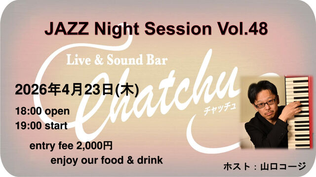 ¥Û¥¹¥È¥×¥ì¡¼¥ä¡¼¤Ë¥Ô¥¢¥Ë¥¹¥È¤Î»³¸ý¥³¡¼¥¸»á¤ò¤ª·Þ¤¨¤·¤Æ¤Î¥¸¥ã¥º¥»¥Ã¥·¥ç¥ó¤Ç¤¹¡£ ¡úËè·îÂè4ÌÚÍËÆü¤Ë³«ºÅ¡ª¡ª ¡ù2026ǯ4·î23Æü¡ÊÌÚ¡Ë 18:00¡Á¡¡OPEN ¡¦19:00º¢¤è¤ê¤´»²²Ã¾õ¶·¤ò¸«¤Æ¥¹¥¿¡¼¥È¤·¤Þ¤¹¡£ ¡¦²»½Ð¤·¤Ï22:00¤Þ¤Ç¤È¤Ê¤Ã¤Æ¤ª¤ê¤Þ¤¹¡£ ¢¡»²²ÃÈñ¡¡¡ï2,000 ¢¨ÊÌÅÓ¤´°û¿©¤ò¤ª´ê¤¤¤¤¤¿¤·¤Þ¤¹¡£ ¢¡¥Û¥¹¥È¥×¥ì¡¼¥ä¡¼ ¥Ô¥¢¥Î¡¡»³¸ý¥³¡¼¥¸ ¥»¥Ã¥·¥ç¥ó¤Ë»²²Ã¤´´õ˾¤ÎÊý¤Ï¡¢¥ê¥¯¥¨¥¹¥È¶Ê¤Î¥³¡¼¥É¤È¥µ¥¤¥º¡¦¿Ê¹ÔÅù¤¬Ê¬¤«¤ëÉèÌ̤ò¤ª»ý¤Á¤¤¤¿¤À¤¯¤È¥¹¥à¡¼¥¹¤Ë¿Ê¤á¤é¤ì¤ë¤È»×¤¤¤Þ¤¹¡£ ¤â¤Á¤í¤ó¥ê¥¹¥Ê¡¼¤È¤·¤Æ¤Î¤´»²²ÃÂç´¿·Þ