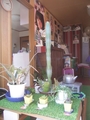 インドへの出発に先立ち、室内ガーデンの全アイテムの鉢替え&外置き移行完了。「観葉」系は結局玄関周りに移動させ、南面は「多肉」系のみとした。サボテン大鉢は勝手口手すり付近に寄せて、インシュロックで支えて揺れ止め固定した。今回は時を同じくして同
