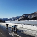 昨日から今日の朝方まで粉雪。ZZ-R1100かハーレーで走るはずだったけど、こりゃ誰も来ないね。じゃあ、一人で龍飛へ!「龍泊ライン」と同様に通行止めの「あじさいロード」はまだ雪があるかな?様子を見るならオフ車だな!って事で、セローで行くよ!午後から