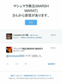 各位・緊急信: 自殺強要の脅迫がありました。ツイッター社には報告済ですが当該ツイートが削除されている為対応されるか不明です。極めて危険人物と思慮されますので下記アカウントには関わらぬよう厳重な警戒をお願いいたします。 @marsh_marat