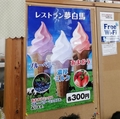 ●オフ会レポート7/道の駅白馬で解散 お土産購入とオフ会全体交流のため各車道の駅白馬に集結。参加者全員が今日の感想を語り合いました。道の駅白馬はこの地方の道の駅としては大きい方です。食堂のソフトクリームが美味しいと好評でした。 ここの名物は