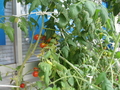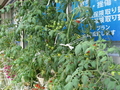 今年の春、仕事場の前にミニトマトの苗を植えて二か月半経ちました。今では2メートルを超える程に成長し、芯を止めたら横に広がり始めて、たわわになっています。次々に色づき始めて、もう300個以上収穫しています。毎日暑いので水やりが大変ですが、来院