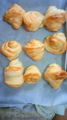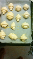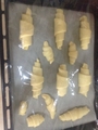 先週の週末に再度クロワッサンに挑戦しました。形がいまいちだったので、今度は形をきちんと作るように心がけました。金曜日の夜に材料を混ぜて一次発酵させ、冷蔵庫で一晩生地を休ませました。土曜日仕事が終わって自宅に帰ったら、さあ、クロワッサン作りで