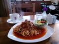 駅前のミスタードーナツに行く予定だったけれど、お腹がすいたので、うちから徒歩3〜4分のところにあるカフェレストランに入ってみました。いつも前を通るのですが、初めて入った。小さな一軒家レストラン。予想以上にいいお店でした。