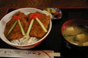 は一枚のカツを、裏返したドンブリのふたにのせてから食べるのが流儀。さっそくカツを頬ばると、ころもに染みた漬けダレと豚肉の旨味が口の中全体に「じわー」っと 地で考案されたこのメニュー、うんちくを語る必要はなさそうです。 町内に十数軒のお店があります。いずれも漬けダレの味に個性があり、食べくらべるのも一興です。 問い