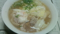 お腹空いてきたので早めの昼食、昨日出張シェフで残ったスープで醤油生ラーメンをつくって美味しくいただく、鶏白菜そば、といったところでしょうか、鶏と和出汁Wスープの深みがとっても美味しかったでした