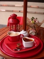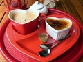 サーブされたトレーは真っ赤なハート型。お揃いのハート型のマグカップに、同じくハート型のプリン。