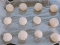 良い感じに冷めた栗餡をスプーンですくい、適当にちぎったパン種に入れて丸めます。