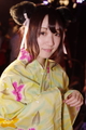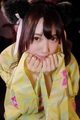ばんぱいあ:黄緑地の浴衣に紫の帯。