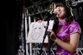 スタンドマイクを使い、スケッチブックに絵を描きながらのトーク。