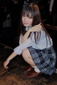 衣装は水色の長袖に紺系のネクタイとスカートの制服姿。