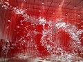 入場するとまず、天井からの長い長い赤い糸と、まっ赤なドレスを融合した作品に圧倒される。