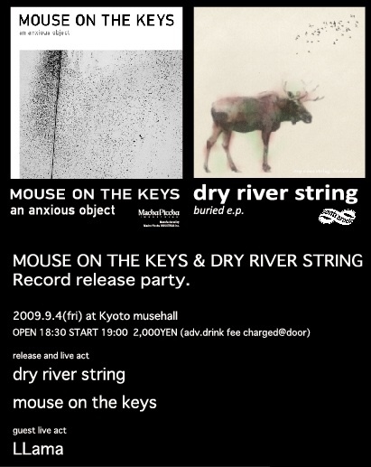 9月4日@musehall open 18:30 start 17:00 2,000yen(adv.drink fee charged@door) act MOUSE ON THE KEYS dry river string LLama