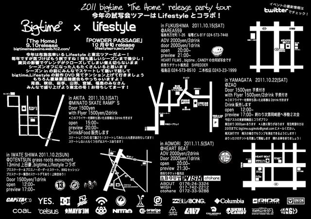 in Fukushima 2011/10.15(sat) @AREA559 福島市万世町1−25 福電ビルB1F 024−573−7448 open 20:00~ preview21:00~ ADV 2000yen/2drink door 2000yen/1drink heart films,bigtime,candy の合同試写会です! 前売りチケット販売 SHREDDER 福島店024-573-8510 二本松店0243-23-1999
