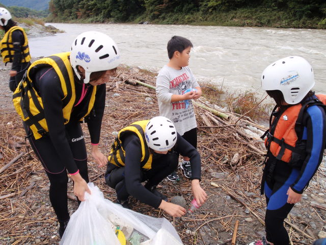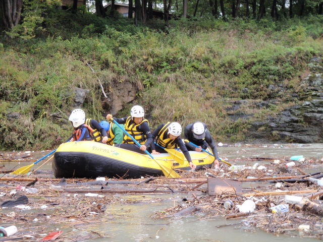 ラフティング中もゴミ拾い