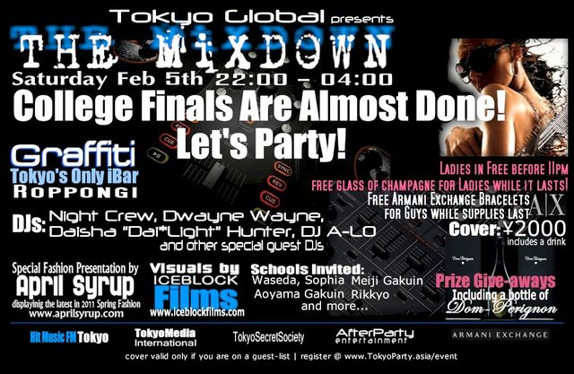 “The Mixdown” is happening Saturday February 5th starting at 10pm, at Tokyo’s only iBar ‘Graffiti’ in Roppongi.