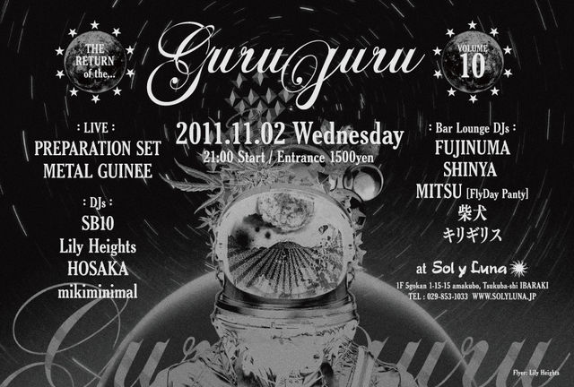 GuruGuru 2011.11/02(祝前日) at Sol y Luna start21:00-03:00close entrance 1500yen