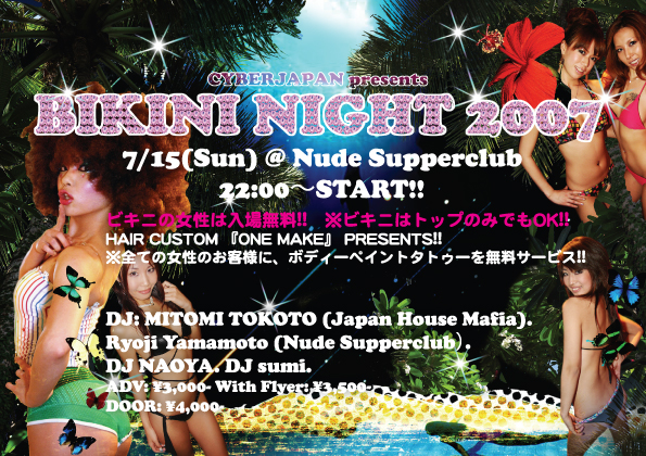 開催終了7/15(日・祭日前)BIKINI NIGHT 2007 @ Nude Supper Club(香川)