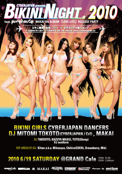 今年も夏がやって来る!2010年もやります! CYBERJAPAN BIKINI NIGHT 2010。 関西最大級のビキニナイトがグランカフェに出現!