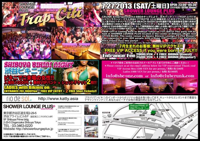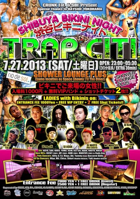 TRAP CITI渋谷ビキニナイト (7月27日土曜日)渋谷シャワーラウンジ・プラス: スペースシャワーTVザ・ダイナーと同じ場所