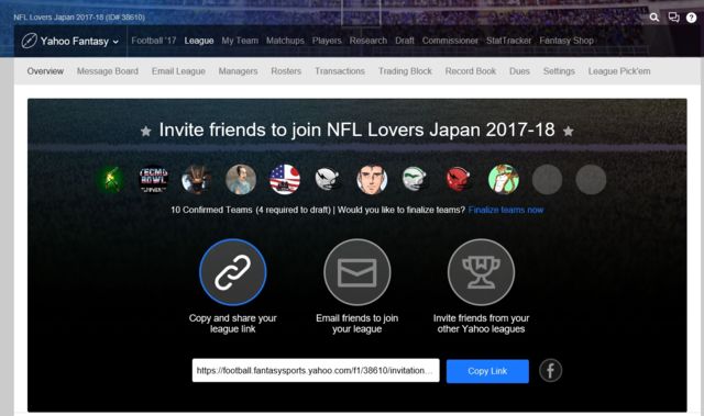 US Yahooのファンタジーフットボール(NFL)のリーグ運営を長年やっています。