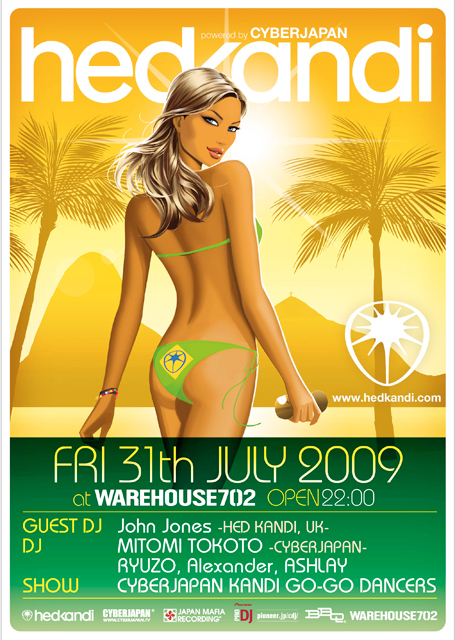2009年はさらにパワーアップし、HED KANDI からのゲストDJ John Jones に加え、レジデント DJ として、「HED KANDI 2008: THE MIX」に、日本人初のトラック収録となった MITOMI TOKOTO が共演。KANDI GO-GO DANCERS 達のショーと、キラキラ華やかさ満点の夜を踊り明かそう!
