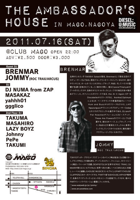 2011/07/16/SAT THE AMBASSADOR'S HOUSE in NAGOYA supported by DIESEL:U:MUSIC @CLUB MAGO http://club-mago.co.jp/