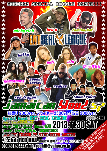 お江戸東京を代表するレゲエクルーENT DEAL LEAGUE/エントディールリーグ(KEN-U/ケンユー,MICKY RICH/ミッキーリッチ,DOMINO-KATドミノキャット)が室蘭に3人全員揃います!!!!!