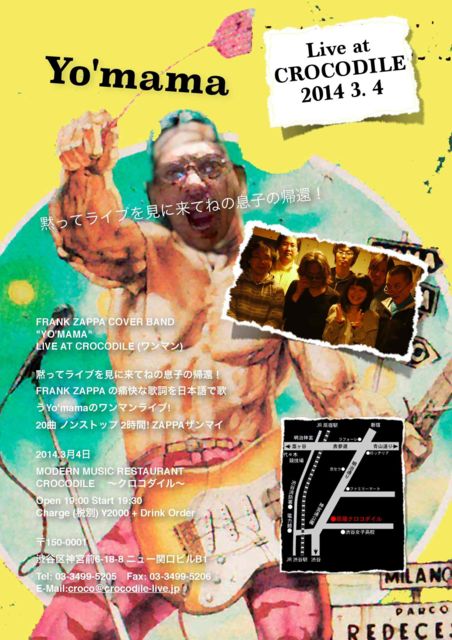 改正 LIVE 告知、失礼致します。 FRANK ZAPPA COVER BAND "YO'MAMA" LIVE AT CROCODILE (ワンマン)