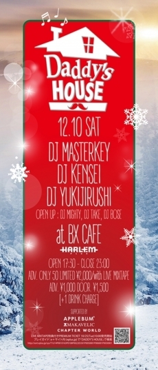 HARLEM PLUSが提案する新機軸のPARTYとして装い新たに発進した”DADDY'S HOUSE”、12月10日(土)に第2回開催決定! 渋谷にCLUB HARLEMがオープンした1997年よりHIP HOP PARTYの代名詞として君臨していた"DADDY'S HOUSE”、日本のHIP HOP NIGHTシーンの礎を築いたといっても過言でない伝説のPARTYが聖地に再び降臨。当時の空気感そのままに、さらに進化したDJ陣よるLIVE MIX SHOWはここでしか体験できません。 RESIDENTにはDJ MASTERKEY、DJ KENSEI、DJ YUKIJIRUSHIのオリジナルメンバーを筆頭に90'sから00'sを色濃く演出するアーティストがラインナップ。