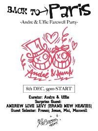 12/8(mon) BACK TO PARIS Culator:Andre&Uffie Suprise Guest Selector: Andrew Levy (The Brand New Heavies) Guest Selectors:Fraser Cooke.Jesus.Mai.Maxwel