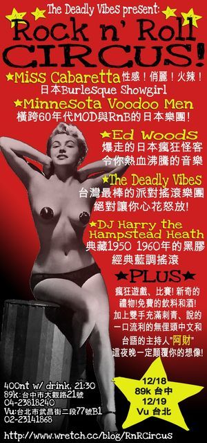 Hey people, the Rock&Roll Circus is coming to town again! Now in it's third year, THE DEADLY VIBES trade mark party promises to be even more over the top, crazier, and wilder then ever!