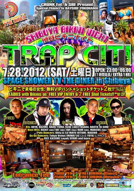 開催終了7/28[土]★渋谷で800人規模・巨大パーティーが最新大型エンターテイメントスペース(109真横)スペースシャワーTVザ・ダイナーにて開催★"TRAP CITI"-渋谷ビキニナイト★DJ KOYA, DJ HAZIME 等、豪華出演者総出演★