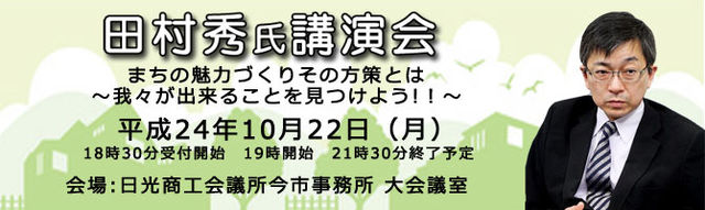 開催終了田村秀氏講演会  まちの魅力づくりその方策とは 〜我々が出来ることを見つけよう!!