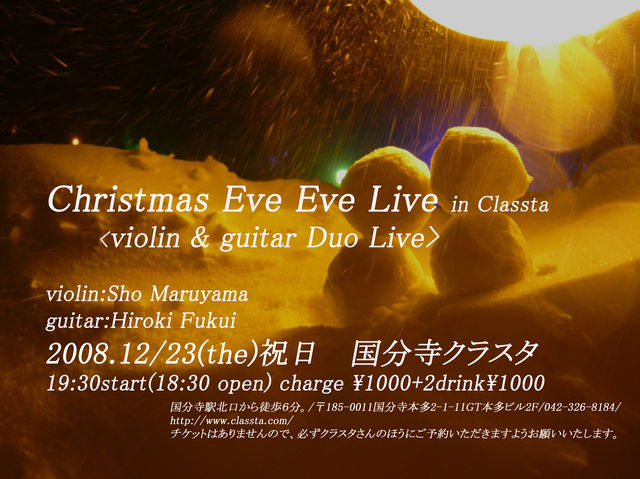 クリスマスイブの前日にヴァイオリンとのデュオライブ国分寺クラスタで行います。
