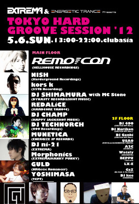 【MAIN FLOOR】 REMO-CON (HELLHOUSE RECORDINGS) NISH (Harderground Recordings) kors k (S2TB Recording) DJ SHIMAMURA with MC Stone (DYNASTY RECORDS/SHOT MUSIC) REDALiCE (HARDCORE TANO*C) DJ CHAMP (HAPPY JACK/SHOT MUSIC) DJ TECHNORCH (999 Recordings) MUNETICA (ENERGIZE JP RECORDS) DJ ni-21 (EXTREMA/HIKARIPSE) Morphonics (EXTREMA/HANKY PUNKY) GULD (NRGetic Romancer) YOSHIMASA (TCPT)