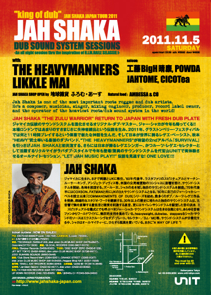 ======================================================================= JAH SHAKA JAPAN TOUR 2011 "king of dub" JAH SHAKA DUB SOUND SYSTEM SESSIONS -An all night session thru the inspiration of H.I.M.HAILE SELASSIE I-