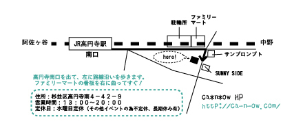 JR高円寺駅南口を出て、左に線路沿いに歩きます。