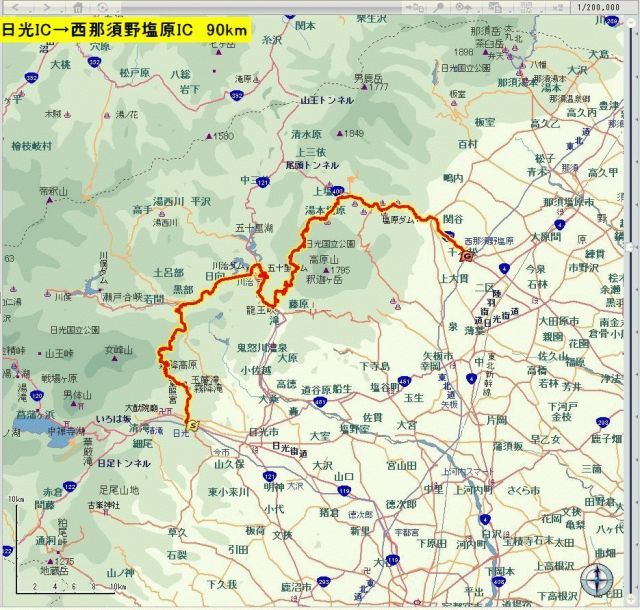 ■ルート:東北道→日光宇都宮有料道路・日光IC→霧降高原→川治温泉→日塩もみじライン→塩原温泉→東北道・西那須野塩原IC