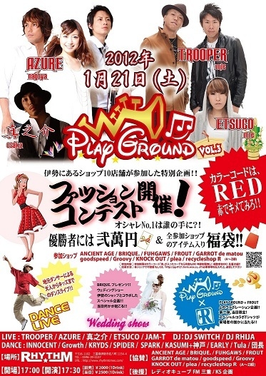 1月21日に伊勢RHYTHMで行われるPLAY GROUND vol.3exclamation ×2