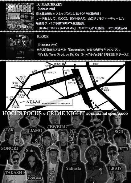 開催終了☆★☆12/1DJ MASTERKEY&KLOOZ出演☆★☆渋谷ATLAS HOCUS POCUS×CRIME NIGHT