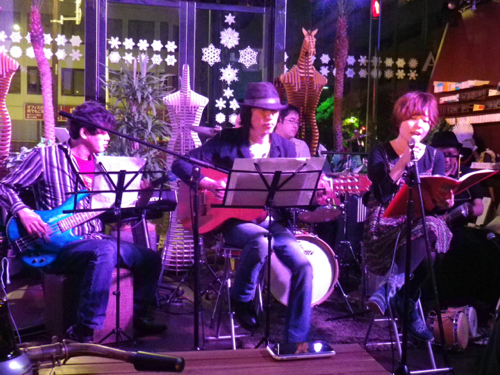 おなじみクレメカフェ(写真)に加え、大江戸菩薩悩婆楽団(大江戸ボサノバ楽団と読みます)が初登場!!