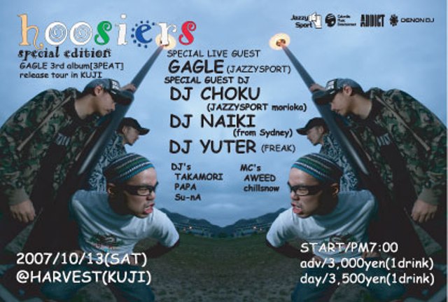 GAGLE Profile DJ MITSU THE BEATS、HUNGER、DJ Mu-Rの3人からなるHIPHOPアーティスト。仙台在住。96年結成。2001年「BUSTTHE FACTS」でデビュー。1年後に1st Album「3 MEN ON WAX」(日本のHIP HOP CLASSICSの1つと名高い名曲『雪の革命』収録)をリリースし、全国二十数カ所のクラブツアーを敢行。デビュー前から鍛え抜かれたパフォーマンスに各地が揺れた。そして仙台のHIP HOPグループとしては初のワンマンライブを開催する。 2004年、メジャーに舞台を移し、ミニアルバム「SUPEREGO」をリリース。音源もさながら映像とのコラボも評価が高く「SPACE SHOWER TV MUSIC AWARDS '05」で『RAP WONDER DX』がBEST HIP HOP VIDEO5作品にノミネート。MTV MUSIC AWARDSでも同曲が最優秀特殊効果ビデオ賞を獲得する。東京で初のワンマンライブ、BLUE NOTE 60周年記念CDに参加するなど、GAGLEの音楽性にさらに注目が集まる。Jazzy sportよりリリースされたシングル『アナクロラリー』はNHK BS「週刊ナビTV」のオープニングテーマ&同番組に出演する。2005年、「BIG BANG THEORY」をDVD付の2枚組でリリース。約30カ所の全国ツアーを周る。2006年にはFOMA『n902ix HI-SPEED』のCMに楽曲提供&出演し、全国に名前を広める一方で、仙台市芸術祭にクラブミュージックとして初参加(HUNGERが同イベントの実行委員会の代表を務め、大成功を収める)するなど、地元に根付いた活動にも重点を置いている。現在、ミヤギテレビにて放送中の『COLOR TV』に定期的にレギュラー出演し、宮城の若者に大きな影響を与えている。 近年、MITSU THE BEATSのソロアルバムが国内外で話題になり、海外ツアーも定期的に行われるようになってきた。今現在、イギリスの国営放送『BBC』など世界各地のラジオ局でGAGLEも含めたJazzy sport misicが流れることが定番化してきている。2007年5月、韓国で開催された『B-BOY PARK 2007』にて『日本人のラップグループとして史上初』となるパフォーマンスを披露し、会場をおおいに沸かせるなど、言語の壁を越えたライブで、日本のみならず、世界からも注目を集める存在になってきている。 2007.6.27 コロムビアミュージックエンターテインメントより 3RD フルアルバム「3 PEAT」をリリースする。