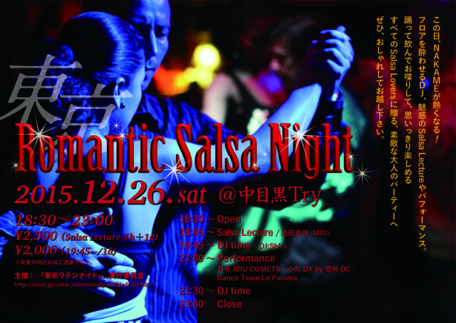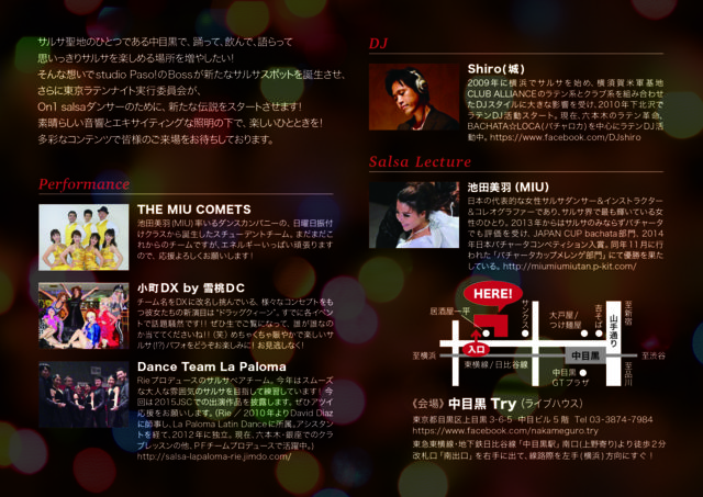 【Dance Team La Paloma】 Rieプロデュースのサルサペアチームです。今年はスムーズな大人な雰囲気のサルサを目指して練習を重ねています!2015JSC出演作品をご覧頂きます。是非アツイ応援をお願いします。(Rieプロフィール:2010年よりDavid Diazに師事し、La Paloma Latin Danceに所属。アシスタントを経て、2012年に独立。現在、六本木・銀座でのクラブレッスンの他、PFチームプロデュースで活躍中。) http://salsa-lapaloma-rie.jimdo.com/