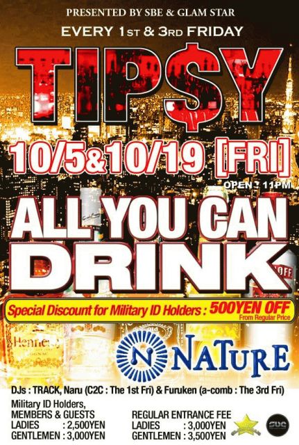 Ladies: 3000yen Gents: 3500yen GLAM STAR Members & Guests, Military ID holders will get 500yen OFF from the reg. price!!! グラムスターメンバー、ミリタリーIDお持ちの方はレギュラー料金より500円OFF! ,,Please mention that you're GLAMSTAR's guest at the entrance. エントランスでグラムスターのゲストとお伝え下さい。,,